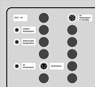 Additional distribution board with female connectors for sensors and measuring instruments.